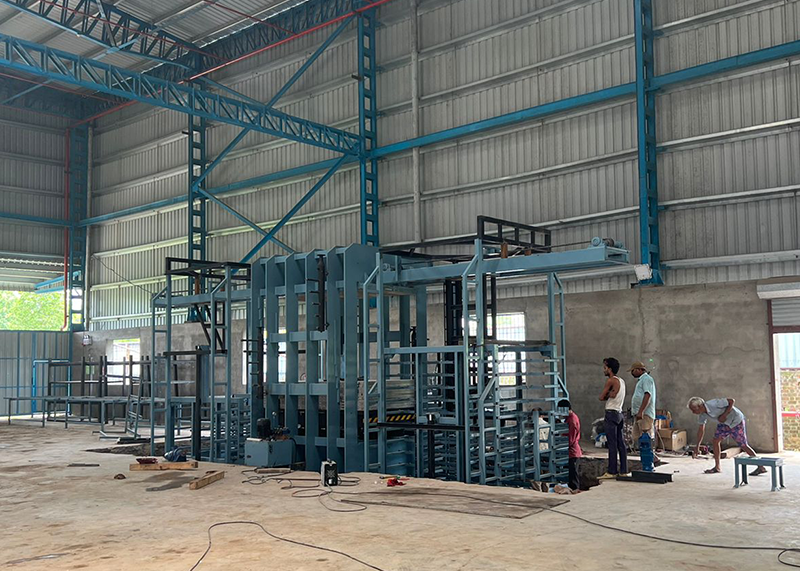 - Once the pressing is complete, the mats are unloaded from the machine, ready for the next stage of production.